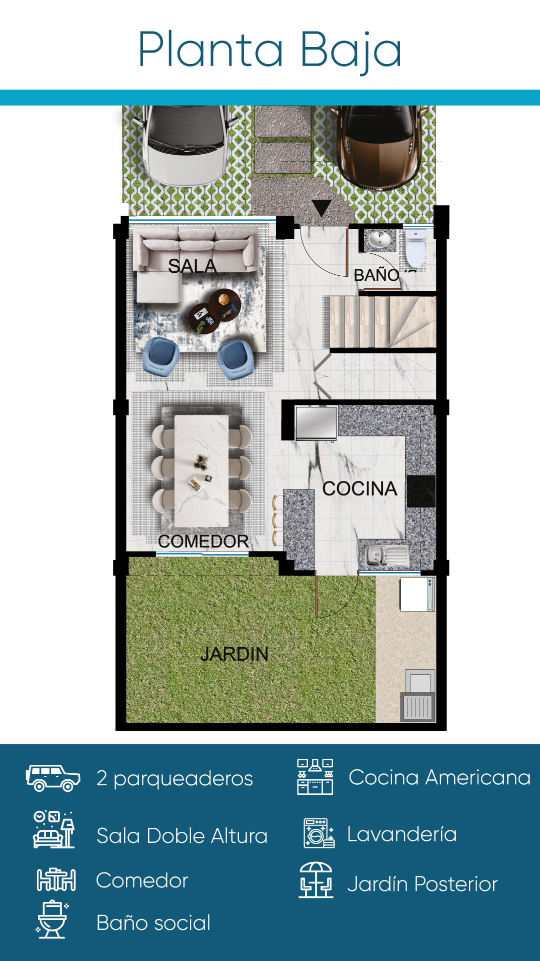 Adicionalmente, cada vivienda cuenta con espacio para parquear 2 vehículos.